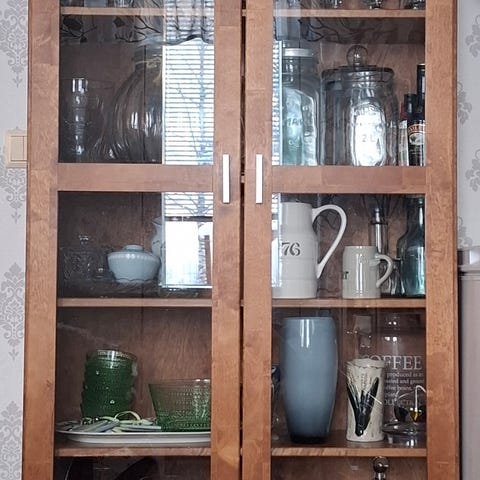 Huomio! vitriinikaapissa olevat tavarat ei sisälly kauppaan. Vitriinikaappi erikseen myytynä 30€ lipasto erikseen myytynä 25 € Yhteishinta molemmille 40 €