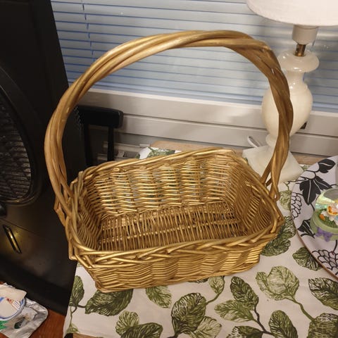 Punottu kori hyvässä kunnossa. Halkaisija noin 55cm, korkeus noin 40cm