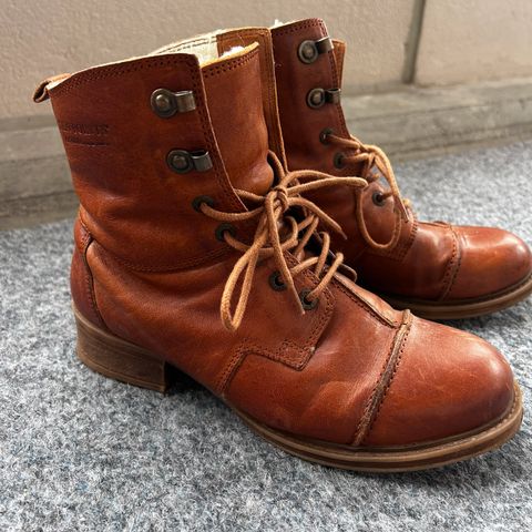 Ten Points Pandora naisten nahkaiset, kanelin väriset nilkkasaappaat.