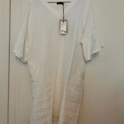 Nanson Sarastus tunika, 100% pellavaa, marinin sininen, kai-kai mitta 56 cm ja pituus niska-helma 84 cm. Sivuissa halkiot.
