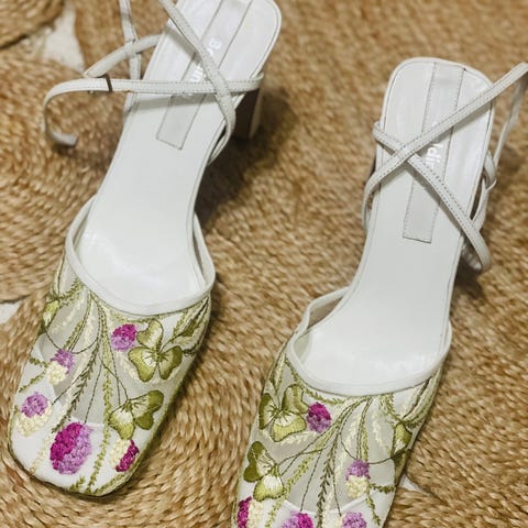 Punaiset Jaime Mascaro -merkkiset korkokengät. Päällismateriaali mokkaa. Koko 37. Koron korkeus keskeltä takaa noin 8,5 cm. Kenkiä on käytetty ja tarkassa syynissä niissä voi havaita hiukan ajan patinaa. Toisesta kengästä korkolappu osin murtunut (ks. kuvat).