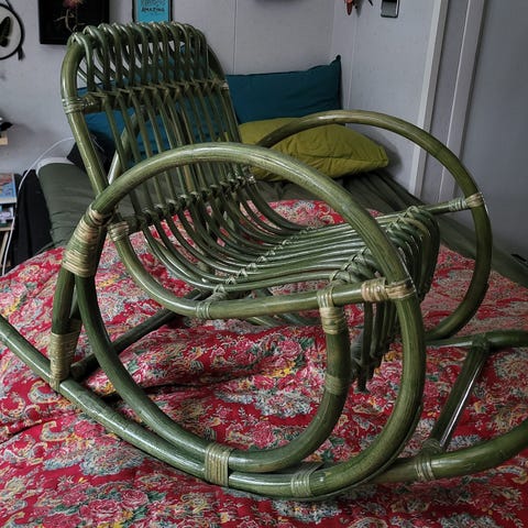 Punainen ehjä lasten keinutuoli.