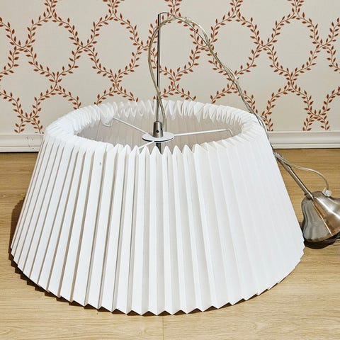 Marmorirunkoinen vekkivarjostin jonka korkeus on 40cm varjostimen halkaisija 30/20/12 cm. Varjostinosa valkoinen.