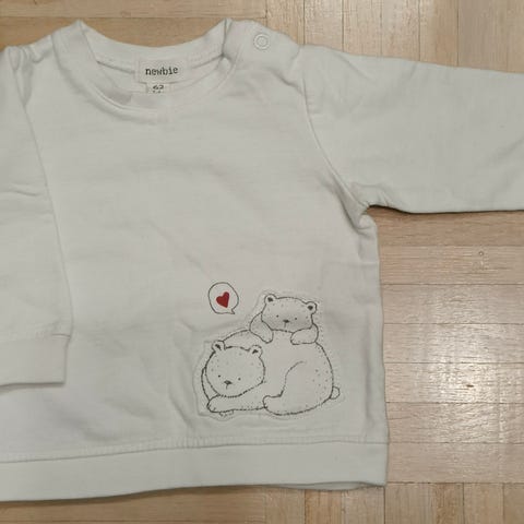 Keltainen Newbien collegepaita, joka on kokoa 62. Edessä kiva tasku frillareunuksin. Materiaali 100 % puuvillaa.