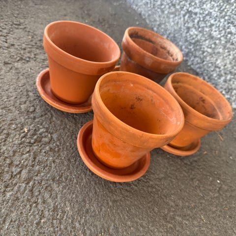 Ikean Luonnon vaaleat Kukka purkit, joissa molemmissa reikä alustat ja mustat Rauta telineet, Purkin kork. 2.7cm, suun halk. 13.3cm, ehjiä.