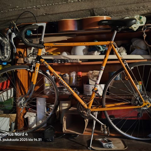L-koon (61cm)Crescent maantiepyörä, siisti runko. Jouhevat vaihteet. Varmaan 180-190 senttiselle sopiva? Jokatapauksessa hyvin rullaava,kevyt kilpapyörän oloinen.Uudet 28mm ulkorenkaat ja Continental sisäkumit asennettu alle.Kahdet polkimet.Ilman kiekkoja 100e.Ei mitään siltä väliltä