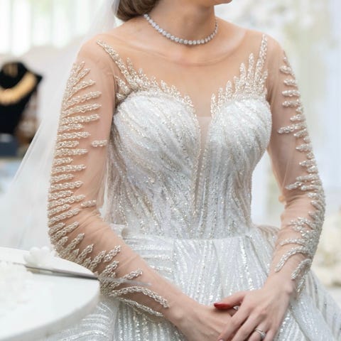 Tämä upea mekko on täydellinen morsiamelle, joka haluaa tehdä vaikutuksen. Mekko on valmistettu korkealaatuisista materiaaleista ja siinä on kaunis muotoilu. Se on myös erittäin mukava päällä.