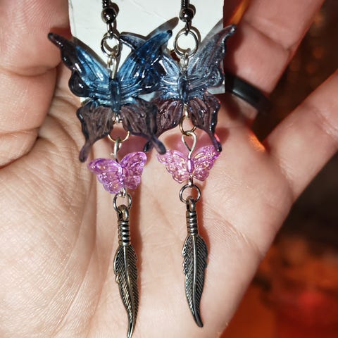 Korvakorut, pituus noin 2cm. Kullanvärisellä allergisoimattomalla renkaalla. Myös hopeisilla metalliosilla mahdollisuus.