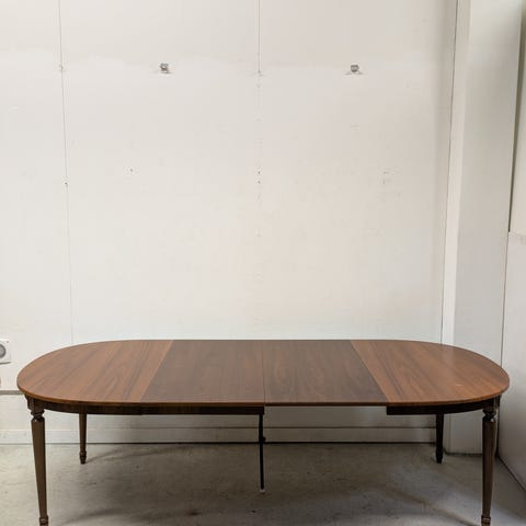 Klassinen tyylin omaava jatkettava ruokapöytä myytävänä. Yleiskunto hyvä. Kannessa kevyttä siirtonaarmua sekä pari kolhua. Jatkopala kätevästi taitolla.