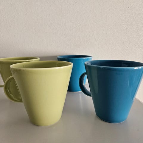 Myydään 5kpl Koko-mukeja, väri lime. Joitain pieniä naarmuja sisäpinnassa, katso kuva.