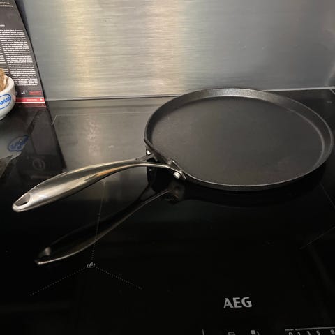 Käyttämätön omelettipannu, ainoastaan pesty. Koko n. 19cmX19cm.