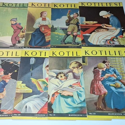 Myyn vanhoja Kotiliesi -, Lotta Svärd- ja Itsenäinen Suomi - lehtiä. Tarjolla ei ole täysiä vuosikertoja, vaan erilliskappaleita Kotiliedestä vv. 1934 - 1959, Lotta Svärd - lehdestä vv. 1941 - 1943 ja Itsenäinen Suomi - lehdestä vv. 1940 - 1944.