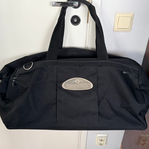 Aito samsoniten matkalaukku/-kassi. Hyvässä kunnossa ja siisti, ollut vähällä käytöllä. Laukkuun on mahtunut 3-4 yön tavarat. Materiaali kangasta.