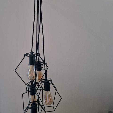 Valaisinliikkeessä esillä ollut ( käyttämätön) kattovalaisin. Metalli+ puu. Halkaisija 38cm, johdon pituus 1m. E27 poltin.
