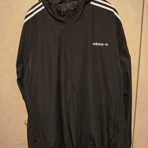 Todella hyväkuntoinen, tyylikäs ja uniikki Adidaksen tuulitakki. Hieno hopeinen kangas rinnassa, selässä ja hihoissa. Pystykaulus. Verkkovuori.