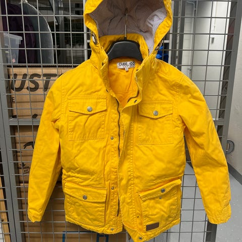 Tummansininen, lähes musta, kevyesti topattu takki. Koko 140cm, merkki Cube.