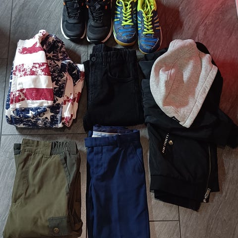 Sisältää farkkuja, collareita, huppari, t-paitoja, neule, nappipaita, shortseja, hihattomia paitoja, ohuita pitkähihaisia paitoja, fleesepuku, fleecetakki, välikausitakki, välikausihousut, sadetakki...jne