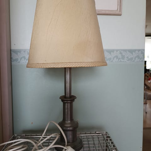 Vanha, kauniinkeltainen lasinen pöytälamppu. Täysin ehjä, ei rikkoja.