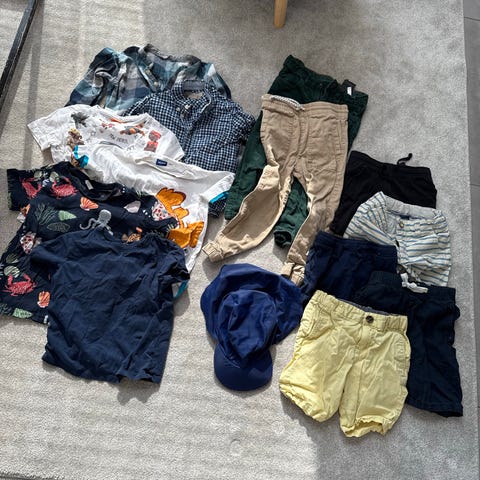 Myydään poikien vaatepaketti. Koko noin 104-110 cm. Monet farkut, paitoja, t-paitoja, yöpuku, nappipaita, shortseja, fleece...jne