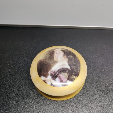 Käsinmaalattu korurasia, hyvässä kunnossa uuteen kotiin, erinomainen esim lahjaksi, halkaisija 6 cm
