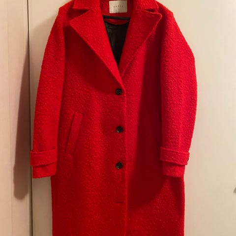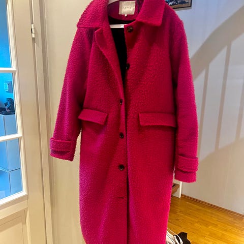 Uusi Kaffe klassinen pohjepituinen takki, koko 44. Väri fuchsia. Kai-kai mitta 64cm.