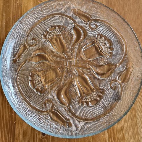 Riihimäen lasin valmistama Julia tarjoiluvati. Ei ole käytetty. Alkuperäinen laatikko missä säilytetty. Halk. 36 cm.