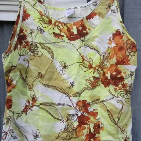Pellavatoppi, koko XL, olka-helma n. 62cm, ry 120cm. Edessä napit. Olkaimet säädettävät. Hyväkuntoinen. 18€. Voi noutaa Ullanlinnasta tai ärräpakettina +6€