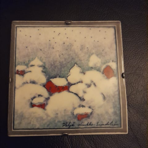Heljä Liukko-Sundströmin suunnittelema ja signeeraama keramiikkataulu.
