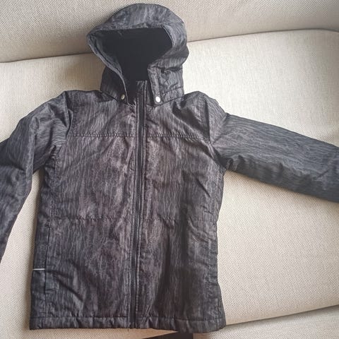 Lämmin ja siisti tummanharmaa toppatakki, hupun reunassa tekoturkis. Tarroissa hieman tarttunutta nukkaa jota en ole koittanut poistaa (tarrat pitävät edelleen), muuten erittäin siisti kunto. Playtech by Name it. Kulkeutuu Jyväskylään, myös postitus kuluja vastaan onnistuu (posti tai matkahuolto).