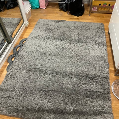 Harmaa pehmeä matto. Pesty ja valmis käyttöön. Ei ole ollut pesun jälkeen käytössä, mutta meillä on eläintalous.