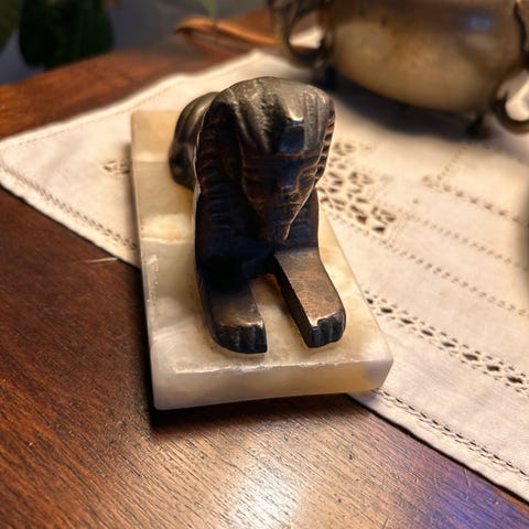 Myydään Vintage <60 luvun) Tutankhamonin kuolinnamion pienoismalli. Namio on messinkinen ja pohja marmoria.