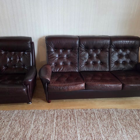 Hyvässä kunnossa lähdesmäeltä ostettu nahkainen Anne sohva ryhmä 3+1+1