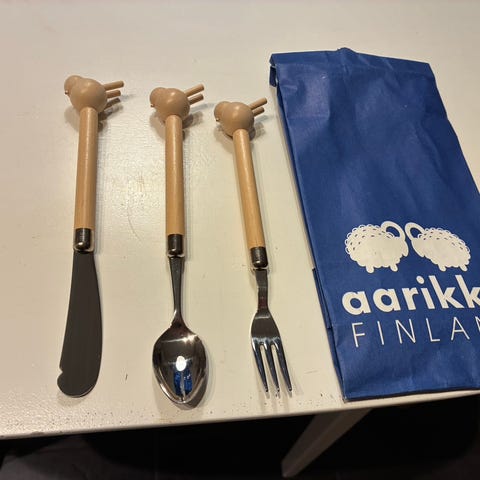 Alkuperäistä pakkauksessa Aarikan Veitsi ja Haarukka, pituus 15.5cm.