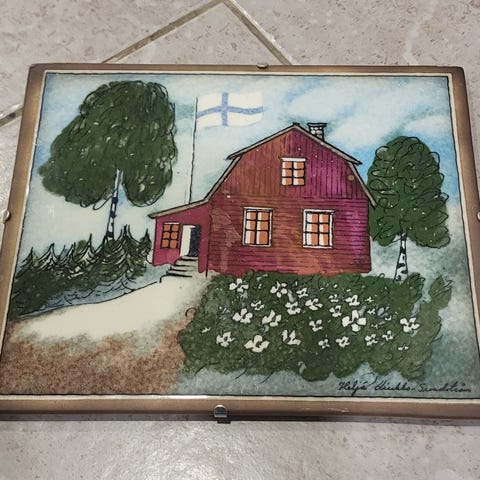 Suomi Leijona vanha hopeoitu pikkulautanen. Halkaisija noin 8,5cm. Pohjassa ALP-leima, eli alpakkaa.