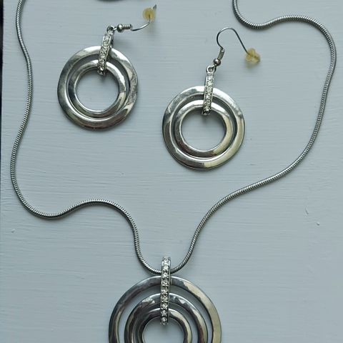 Nahkainen kaulakoru- korvakorusetti.