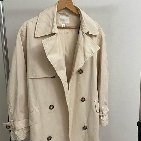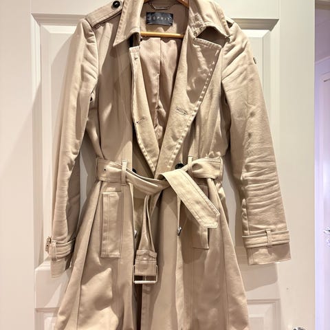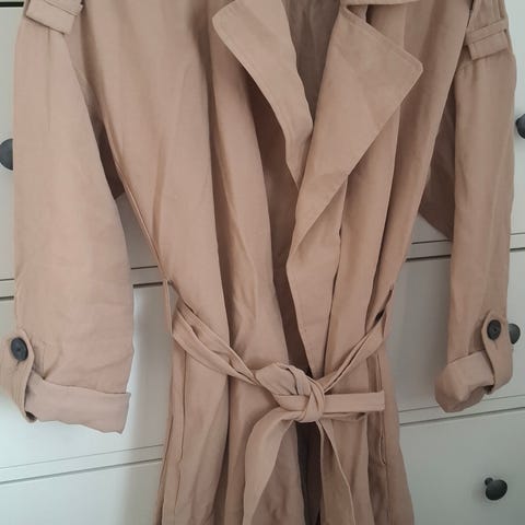 Siisti trenssi, miellyttävä ja hyvin laskeuutuva, kevyt ja hengittävä materiaali. Väri hiukan vääristynyt kuvissa, todellisuudessa sävy näiden väliltä. Myyn toisen puolesta.