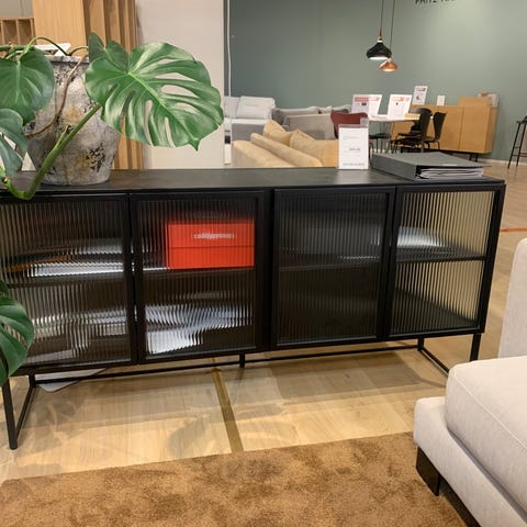Ellos Homen tyylikäs teollishenkinen metallikaappi, jossa verkkokuvio sivuilla. Ovissa lasi, metallikahva ja magneettilukko. Kaksi kiinteää hyllytasoa. Kummankin hyllytason enimmäiskuormitus 15 kg. Korkeus lattiasta kaappiin 69 cm. Hyllytasojen välinen korkeus 34 cm. Kaappi tulee kiinnittää seinään takalevyyn porattujen reikien avulla. Helat/ruuvit eivät mukana.