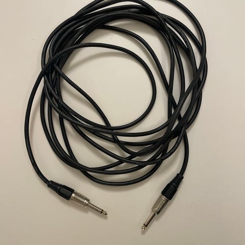 Lisäksi pitkä kitarakaapeli(6 M) D'Addaruo, laadukas (4.7M), 6.3 mm plugi, suora pää
