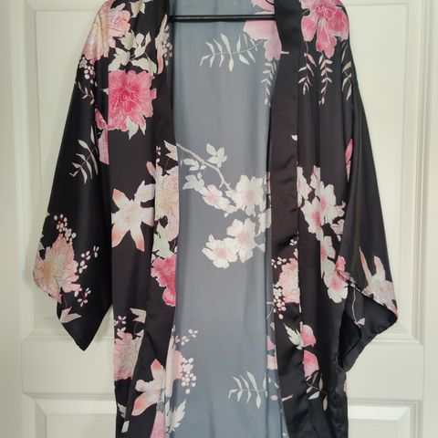 Japanilaisen Ray Cassin-merkin kaftaani/kimono puolipitkillä hihoilla, jossa värikäs kukkakuosi mustalla pohjalla. Edessä yksi nappi. One size, sopii koosta S kokoon L. Hyväkuntoinen, ei moitittavaa.