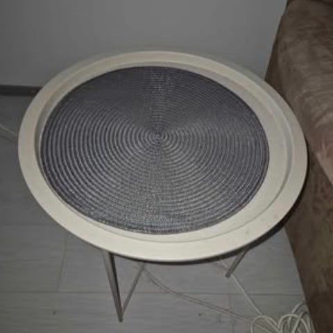 Uutta vastaavassa kunnossa oleva pieni pöytä jonka halkaisija on 60 cm.