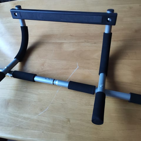 Vähän käytetty leuanvetotanko. Ainoa moite hieman revennyt pehmuste, näkyy kuvissa.