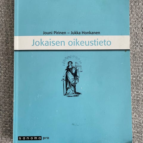 Jouni Pirinen - Jukka Honkanen, 2016 - Sanoma Pron kustantama Jokaisen oikeustieto: "on keskitetty ja helppotajuinen esitys jokaista kansalaista koskettavista oikeudellisista asioista. Kirja on tarkoitettu oppikirjaksi kouluihin, apuvälineeksi aikuisopiskeluun.Asiantuntijan puoleen käännyttäessä se tarjoaa pohjan yhteisen keskustelukielen löytämiseen."