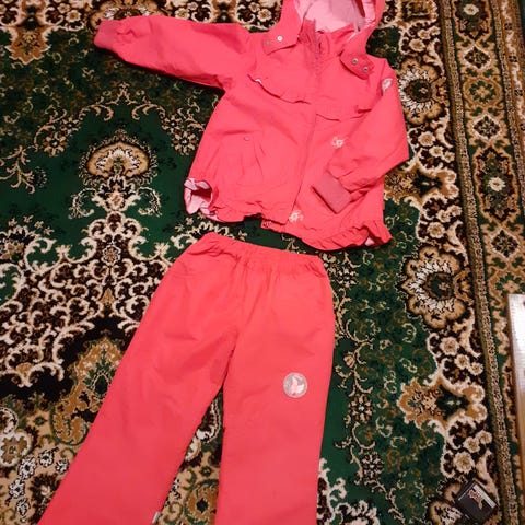 2kpl samanlaisia Ciraf-merkkisiä ulkoilupukuja, esim. sisaruksille. Koot 110cm ja 116cm. Pesty koneessa miedolla pesuaineella 40°c:ssa. Muutama tahra puvuissa on.