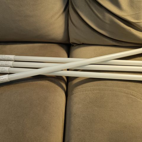 Kuvan nippu uusia loisteputkia kaupan. Pari kappaletta on täydestä paketista otettu, jäljellä 23kpl.
