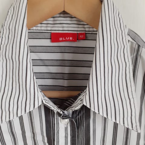 Vaaleanvihreäraidallinen kauluspaita joka on ehjä ja vähän käytetty sekä huolellisesti säilytetty. Sopii hyvin beigen housupuvun alle (ks. Toinen ilmoitukseni).
