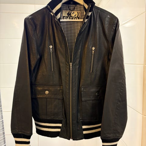 Pehmeää nahkaa erinomaisessa kunnossa. Lapussa koko XS mutta istuu paremmin S tai jopa M kokoiselle.