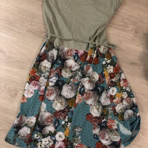 Ihana auringonkukkamekko, kunnoltaan uutta vastaava. Lyhyt helma, säädettävät olkaimet ja sivussa vetoketju. Rinnanseutua korostaa rusetti.
