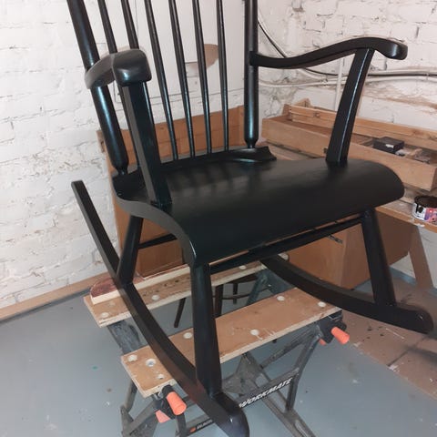 Kunnostettu Seija keinutuoli. Suunnittelija Ilmari Lappalainen 1948, malli numero 651. Valmistaja Askon Tehtaat Oy, Lahti. Tuoli purettu, vanhat maalit ja lakat poistettu. Osat hiottu ja keinu liimattu kasaan ja osin vahvistettu ruuveilla. Tässä vähän tilaa vievä keikkana valmiina maalattavaksi mielivärilläsi.