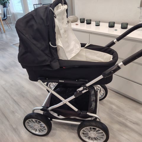 Brion yhdistelmävaunut. Ostettu käytettynä ja käytetty viimeksi lähinnä ulkona nukuttamiseen mökillä. Ilmatäytteiset renkaat (ehjät ja hyväkuntoiset). Mukana sadesuoja ja hyttysverkko. Rattaan valjaista soljen toinen osa rikki ja korvattu retkikoukulla. Työntökahvassa säätömahdollisuuksia eripituisille työntäjille. Yleisesti ottaen siistit vaunut.