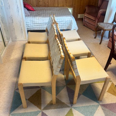 Ostetaan Artekin 611 satulavyötuoleja 2-4 kpl. Haussa sellaiset, joissa vyöt ovat rikki tai yöt pitää uusia, koska joudun joka tapauksessa uusimaan vyöt, jotta tuolit sopivat muiden kanssa sävyiltään. Eli etsin edullisia tuoleja, joissa vain runko ehjä.